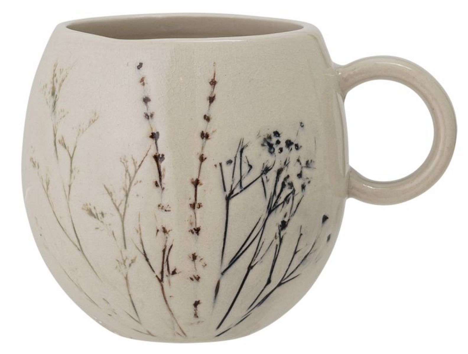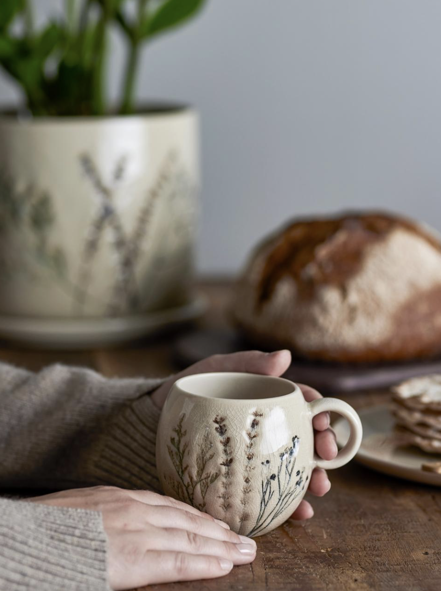 Die Bea Tasse von Bloomingville ist aus Steingut gefertigt, mit einem zarten, handgemalten Blumenmotiv, das auf seiner krakelierten Glasur gedruckt ist. Die handgemalten Details stellen sicher, dass jedes Produkt in der Serie einzigartig ist. Fasst 250 ml. Der Krug ist spülmaschinenfest.