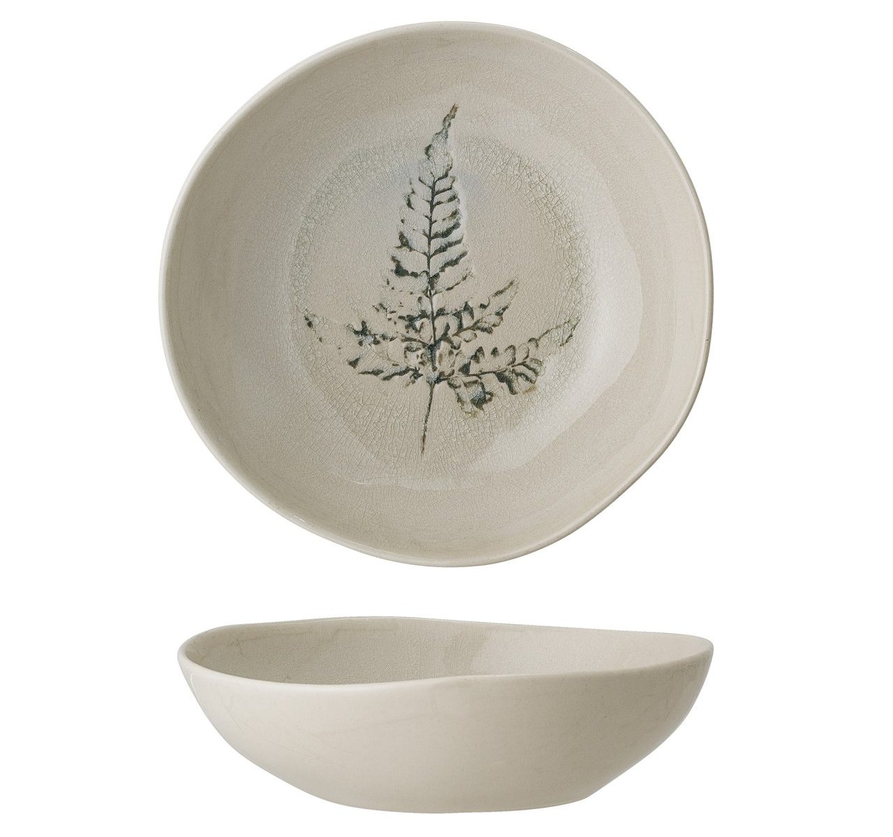 Der Bea Suppenteller von Bloomingville ist aus Steingut gefertigt und in einem beigen Farbton mit einer krakelierten Effekt glasiert. Das zarte Blumenmotiv ist handbemalt und handgestempelt, wodurch jeder Teller einzigartig wird. Der krakelierte Effekt kann sich mit der Nutzung verstärken. Der Teller fasst 1000 ml und ist spülmaschinenfest.