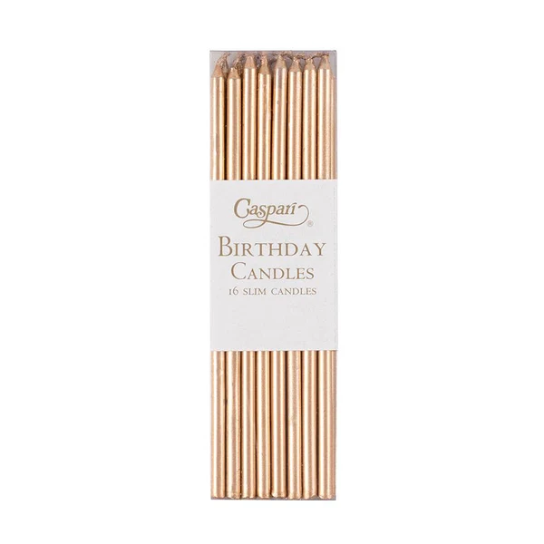 Die Caspari „Birthday Slims“ in Gold sind der perfekte Hingucker für jede festliche Torte oder Cupcakes. Diese schlanken Geburtstagskerzen verleihen Ihrer Feier eine elegante und verspielte Note. Erhältlich in einer Vielzahl festlicher Farben – von kühlen bis warmen Tönen, Primärfarben, Pastelltönen bis hin zu tropischen Nuancen – sorgen sie für eine stilvolle und farbenfrohe Dekoration.