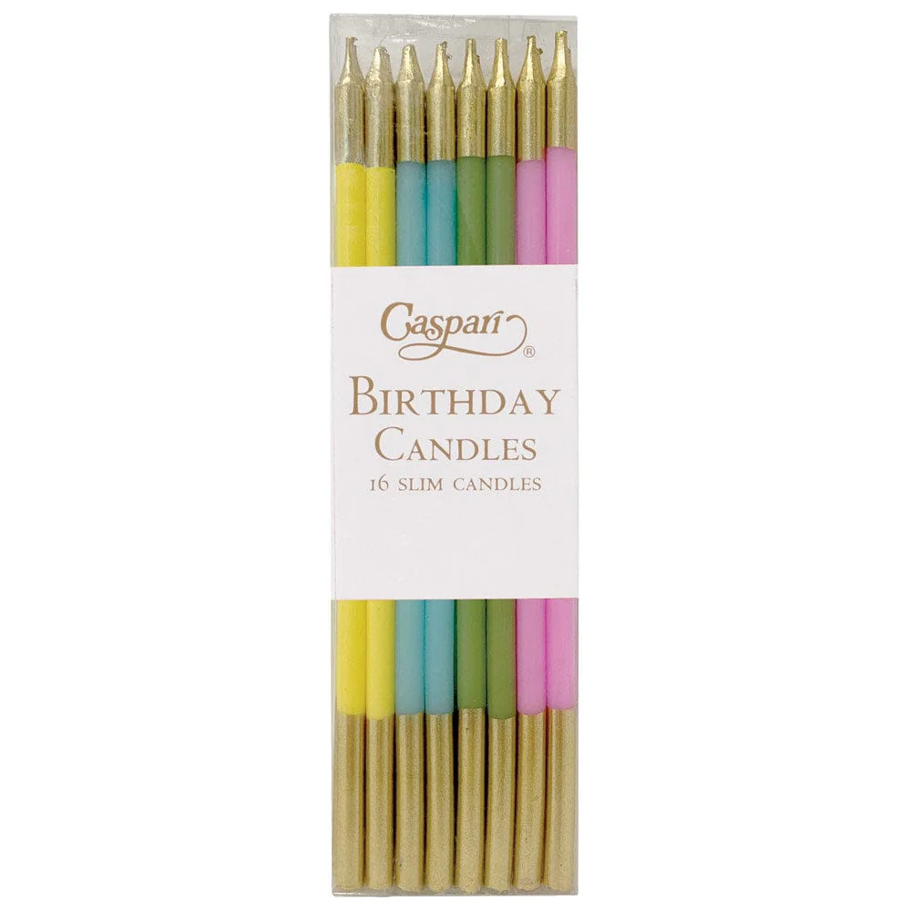 Die Caspari „Birthday Slims“ sind der perfekte Hingucker für jede festliche Torte oder Cupcakes. Diese schlanken Geburtstagskerzen verleihen Ihrer Feier eine elegante und verspielte Note. Erhältlich in einer Vielzahl festlicher Farben – von kühlen bis warmen Tönen, Primärfarben, Pastelltönen bis hin zu tropischen Nuancen – sorgen sie für eine stilvolle und farbenfrohe Dekoration.