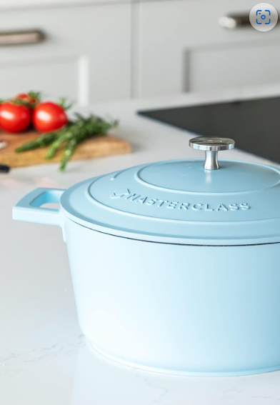 Mittelgroße Auflaufform mit Deckel 4L/24 cm, leichter Aluminiumguss, Induktionsherd geeignet und ofenfest, Himmelblau