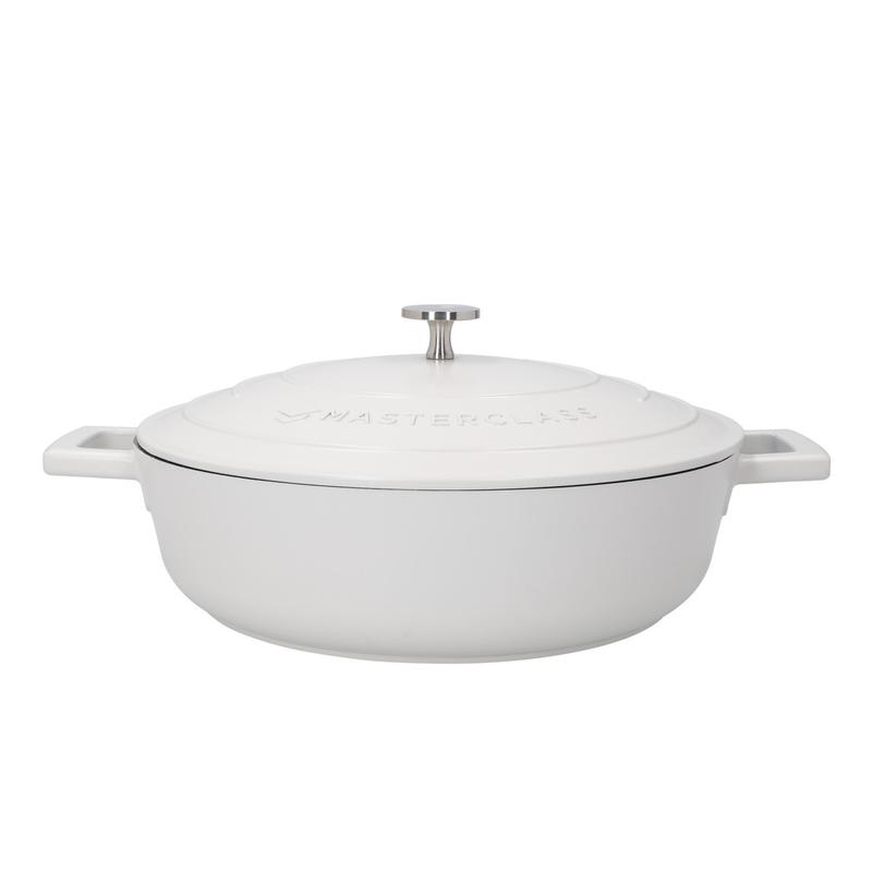 Diese innovative Kasserolle mit hervorragender Leistung ist Teil der meistverkauften Gussaluminium-Kochgeschirrserie von MasterClass. Sie ist leichter als Gusseisen, aber genauso stabil. Die Wärmeleitung von Aluminium bedeutet, dass die Speisen schnell und gleichmäßig gegart werden können, was zu kürzeren Garzeiten führt.