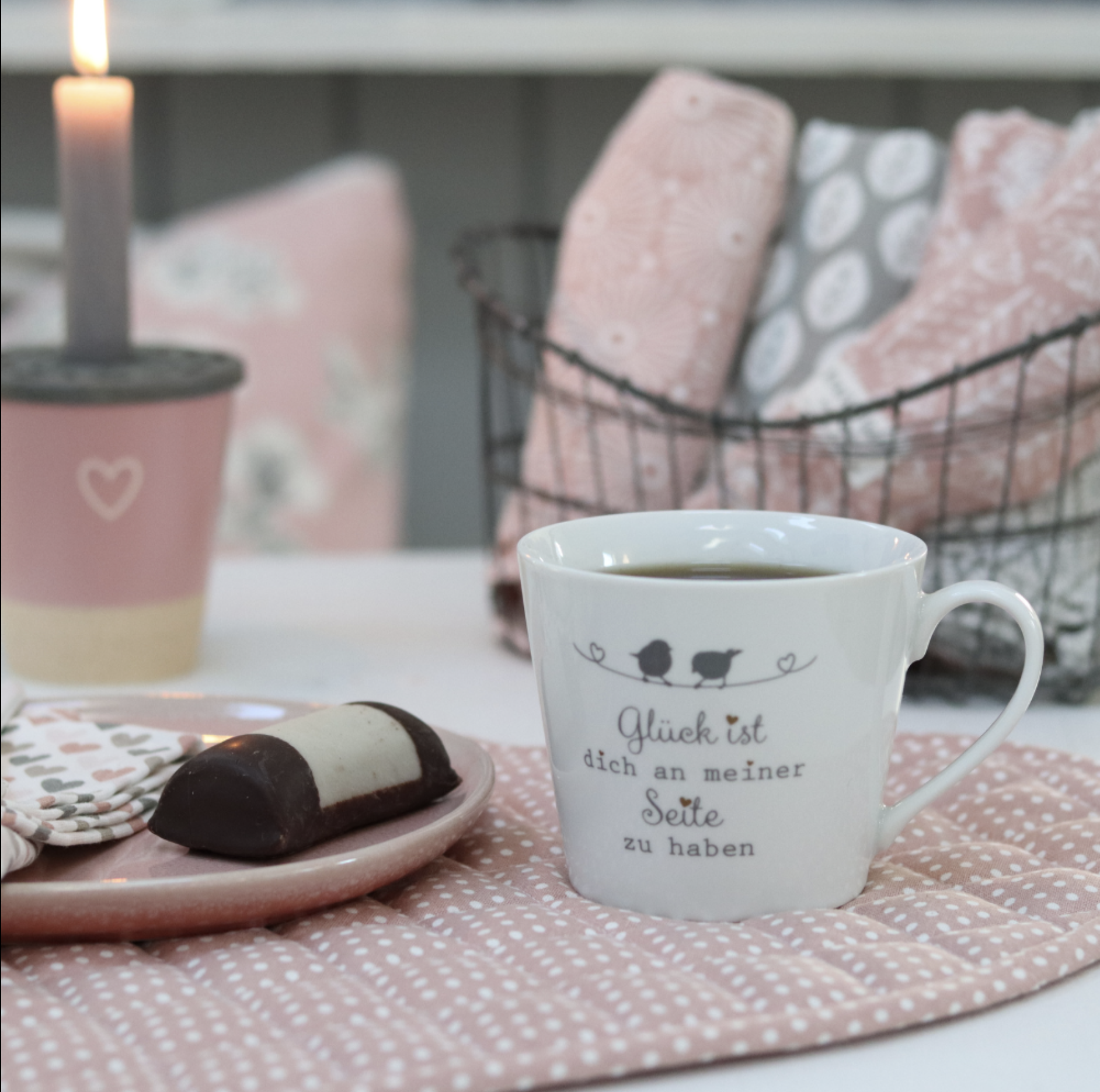 Tasse mit Henkel GLÜCK IST DICH AN MEINER SEITE von Krasilnikoff