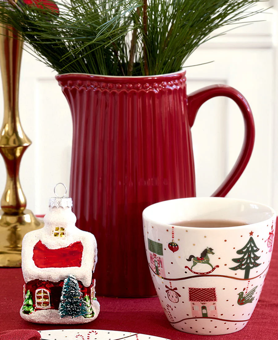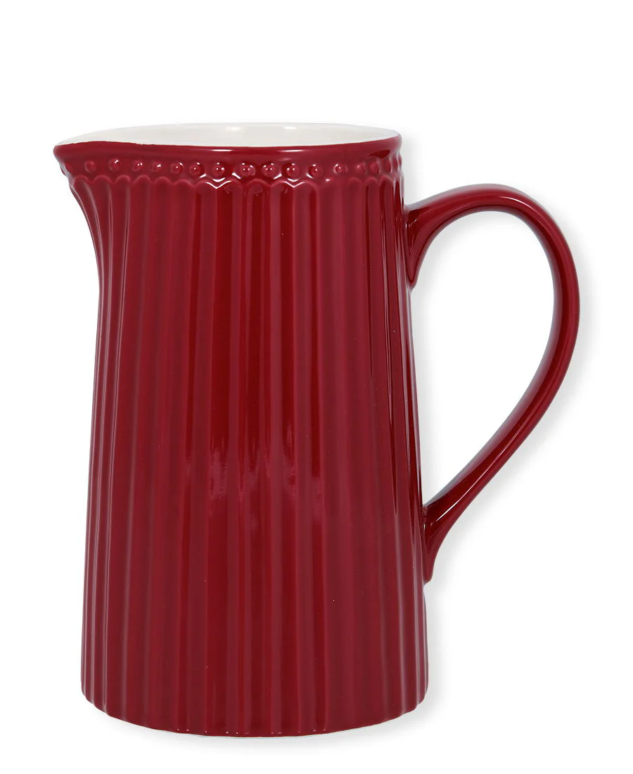 Der GreenGate Krug Alice Alice claret red hat ein wunderschönes Design mit feinen Details, die ihm einen schlichten, lieblichen Ausdruck verleihen.