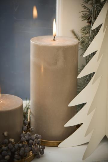 Diese Kerze ist inspiriert von den traditionellen, großen Blockkerzen, die in Kirchen verwendet werden und für ihre lange Brenndauer bekannt sind. Die Kerze hat eine Brenndauer von 120 Stunden und besitzt eine klassische Leinenfarbe, die Schlichtheit und Hoffnung ausstrahlt.