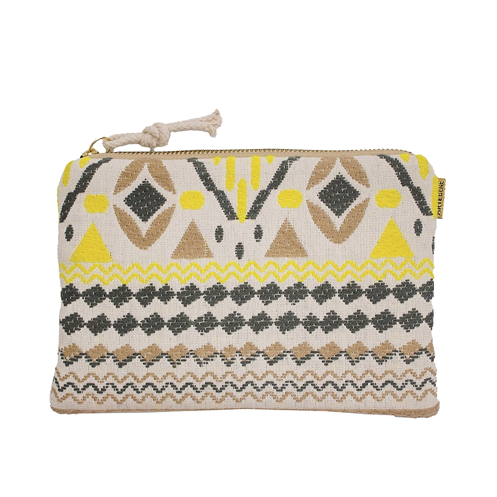 - MAJOIE Kosmetiktasche Gewebt Gelb Beige Grau