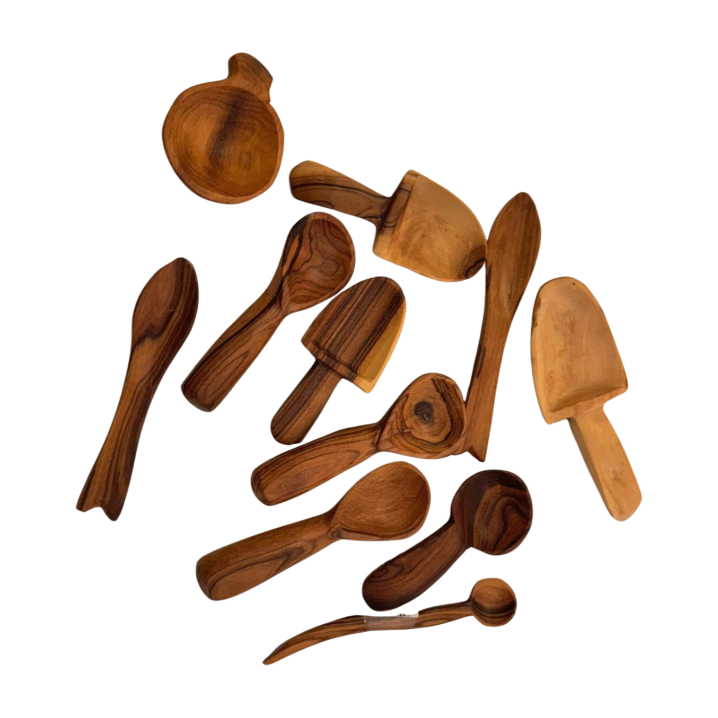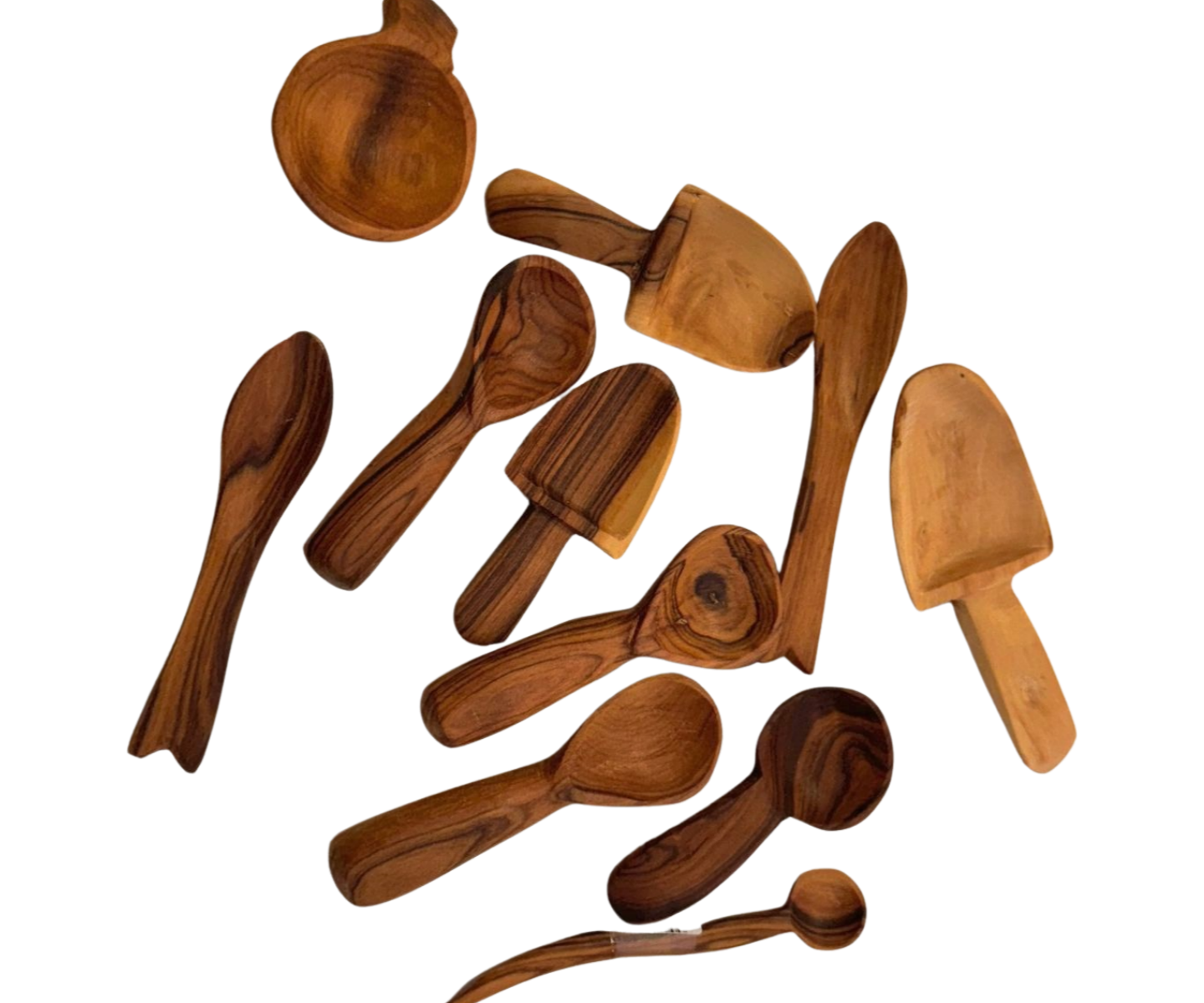 Die wunderschönen Holzlöffelchen sind liebevoll und detaillreich aus Olivenholz gearbeitet. Die Maserung des Holzes gibt den Löffeln, neben der Form, das exklusive Gesicht. Jeder Löffel ist anders.