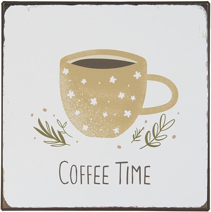 Verleihen Sie Ihrer Küche oder Ihrem Essbereich einen charmanten Akzent mit diesem nostalgischen Metallschild. Das „Coffee Time“-Design bringt eine gemütliche Kaffeeatmosphäre in jeden Raum und sorgt für einen Hauch von Vintage-Charme. Mit den kompakten Maßen von 18 x 18 cm eignet sich dieses Blechbild hervorragend für Wände, Regale oder Türen. Es ist ein wunderschönes Deko-Element, das Kaffeeliebhaber sicherlich begeistern wird.