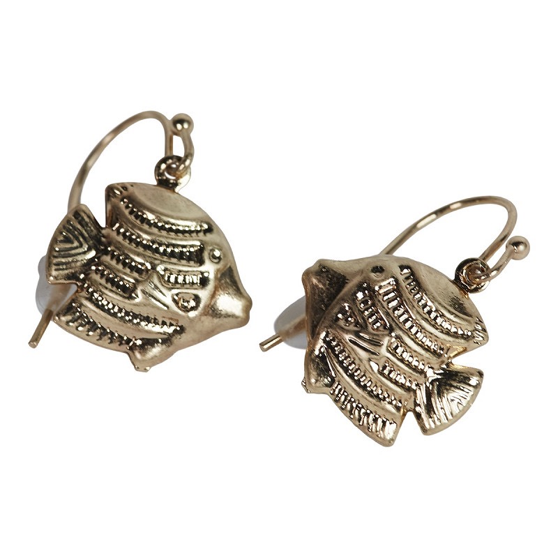 Diese außergewöhnlichen Ohrringe in stilvoller Fischform sind ein echter Hingucker für jedes Outfit. Das detailreiche Design mit feinen Prägungen verleiht den kleinen Fischen eine lebendige Struktur und macht sie zu einem besonderen Accessoire mit maritimem Flair. Die Kombination aus glänzendem Goldton und verspielter Form sorgt für einen trendigen Look – perfekt für alle, die individuellen Schmuck lieben.