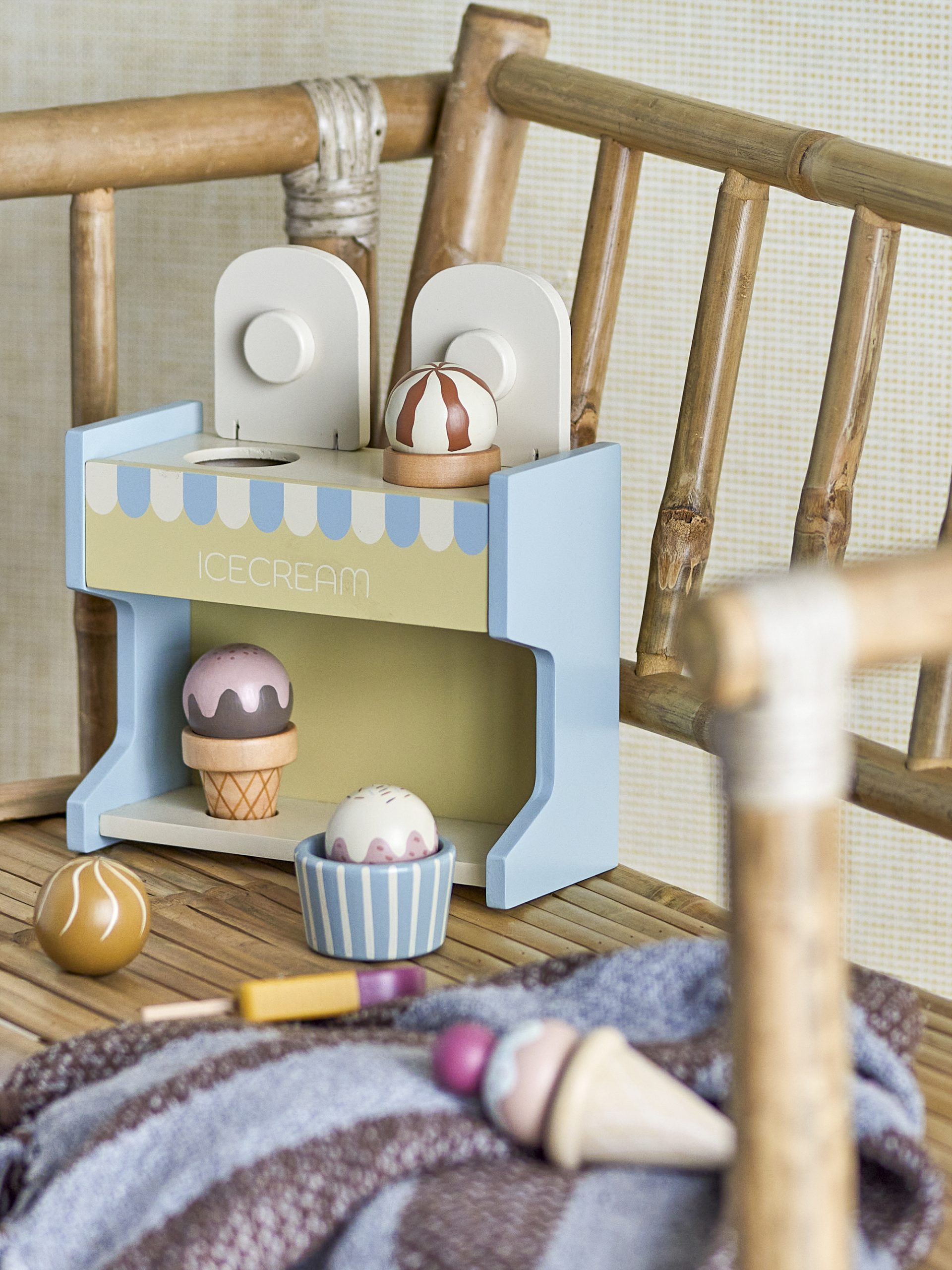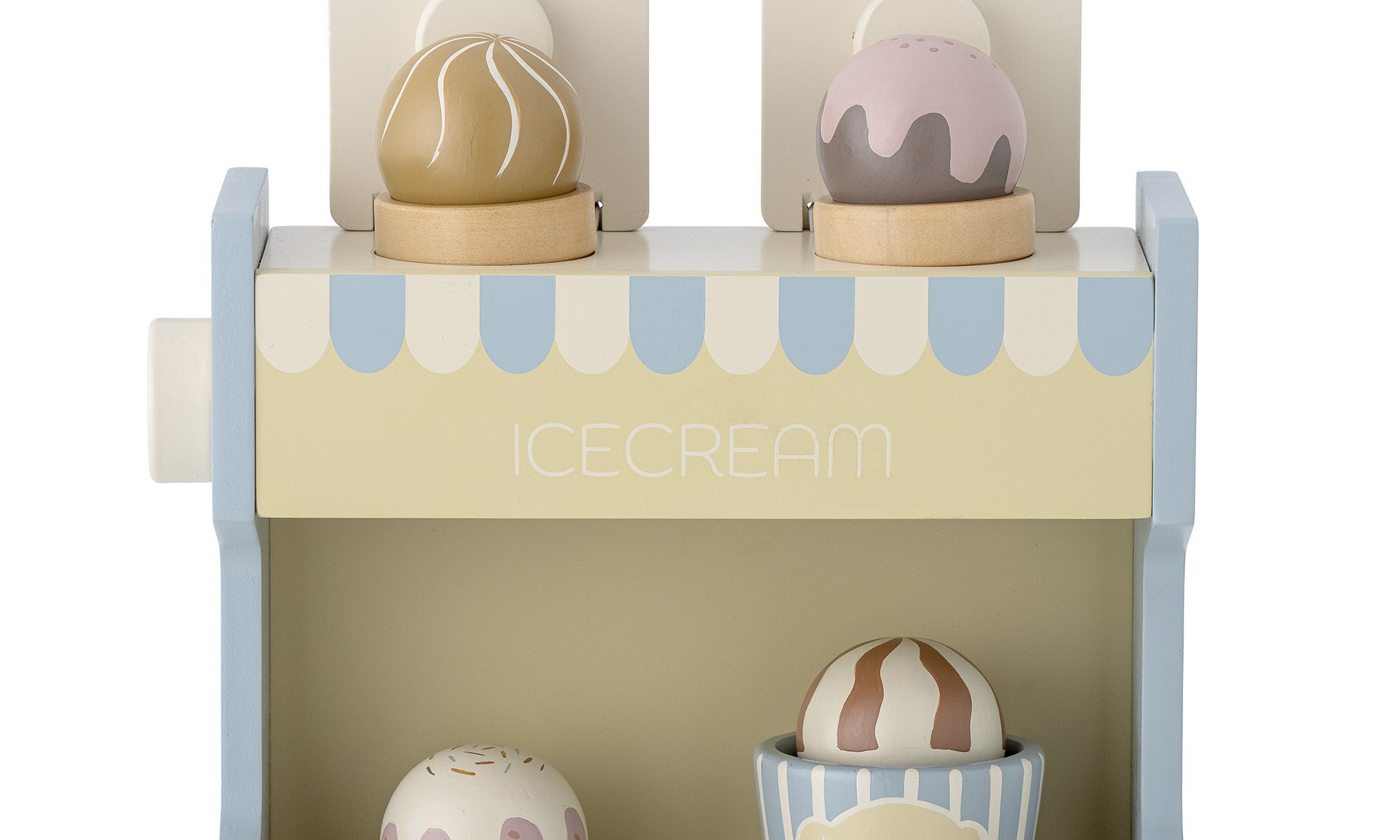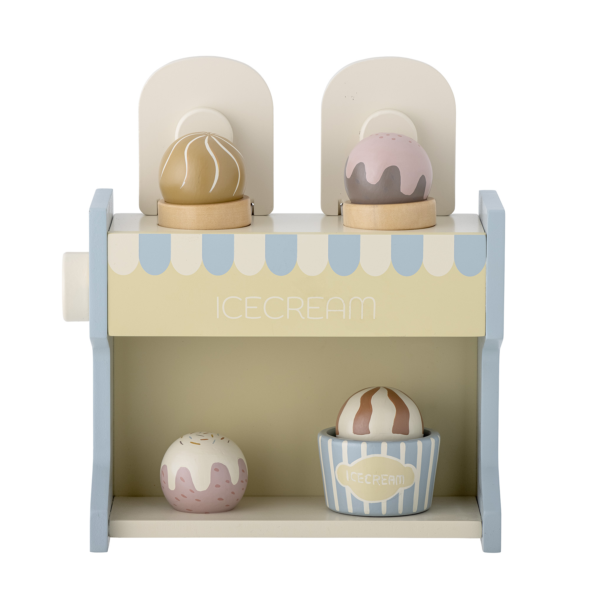 Der Vallie Spielzeug-Eisstand von Bloomingville MINI ist ein lustiges Eis-Set aus FSC-zertifiziertem Holz. Es eignet sich ideal zum Spielen von Eis in Waffeln und Bechern. Das 8 – teilige Set enthält zwei Waffeln, einen Becher und vier verschiedene Eiskugeln, die es den Kindern ermöglichen, ihre Fantasie zu nutzen und ihren eigenen Eisladen zu erschaffen. Dieses Spielzeug ist sowohl unterhaltsam als auch lehrreich und wird zweifellos Stunden voller Freude und kreativem Spielen in das Kinderzimmer bringen.