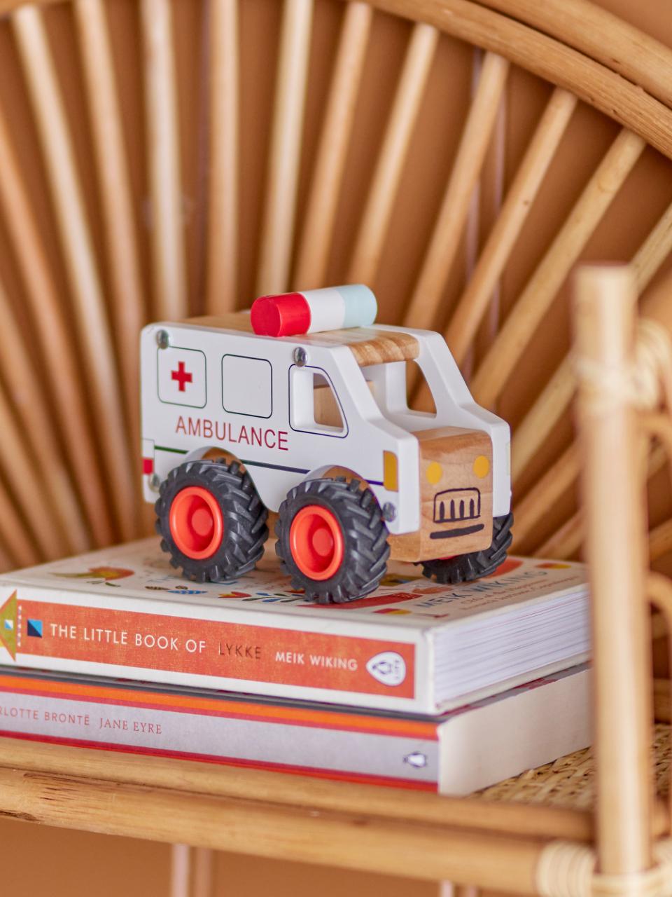 Das Vito Spielzeugauto von Bloomingville MINI ist aus FSC-zertifiziertem Kiefernholz gefertigt und als Krankenwagen gestaltet. Mit seinen robusten Gummireifen ist es bereit für lustige Abenteuer auf allen Oberflächen. Das Spielzeugauto kommt in einer schönen Geschenkbox und ist die perfekte Geschenkidee, die stundenlangen Spaß im Kinderzimmer verspricht.